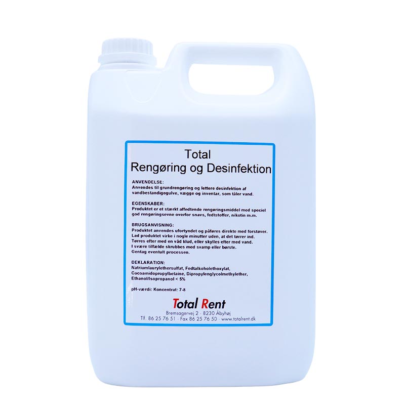 Total Rengøring og desinfektion er klar til brug. Blot sprøjt produktet på overfladen og tør efter - Nemmere bliver det ikke.